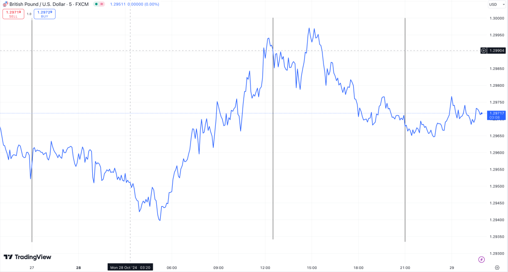 - GBP/USD opened at the overnight highs at US Open with the overnight range being 55 pips. Overall, the trend after US Open was a mixed one with dollar strengthening taking over post 11 AM. I don’t expect the trend of USD strengthening after US open to stop till US election. The overnight range for GBP/USD has been a significantly more than than the US session since last 3 days but breaching 1.30 is going to be difficult without any new news or data releases. I expect slightly tighter overnight range of 1.2950-1.2990 and the US session range being similar to that.