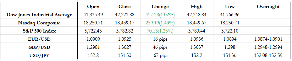 - U.S. equity indexes rose over 1% in line with historical election trends since 2000, with the Nasdaq leading the gains.