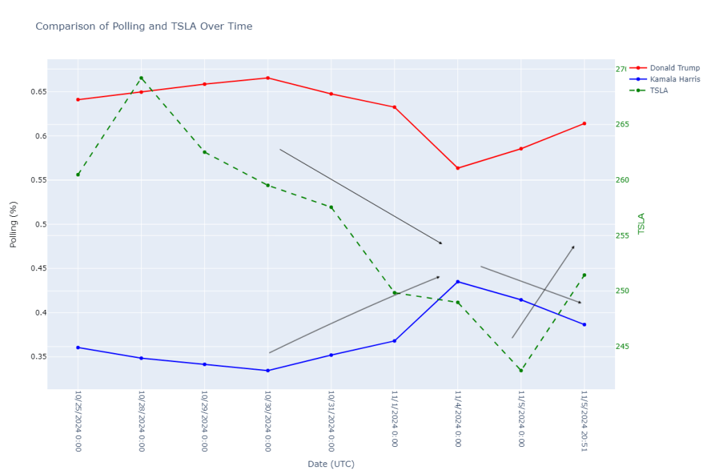 - Interestingly, Tesla was the biggest gainer, which suggests that markets might be pricing in a Trump win, especially as Harris’s poll numbers slipped yesterday.