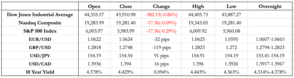 - USD/JPY similar to GBP, also succumbed to USD strength today, closing at 154.5 – the same level as the day following the U.S. election. Without any indications from the BoJ that they will actively take measures to stabilize the JPY, we might see USD/JPY breaking above 158.25, the high from this summer before the Yen Carry Trade began.