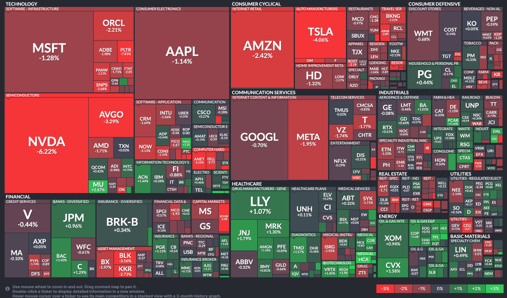 - Meanwhile, Mega-Cap stocks, primarily the Mag-7, saw a pullback for the first time this year, giving back over 50% of their early-year gains as markets adjust expectations for potential interest rate cuts later this year.