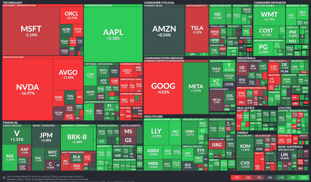 - The drop in yields, combined with the tech sell-off, led to a strong day for Consumer Defensive stocks and Utilities.