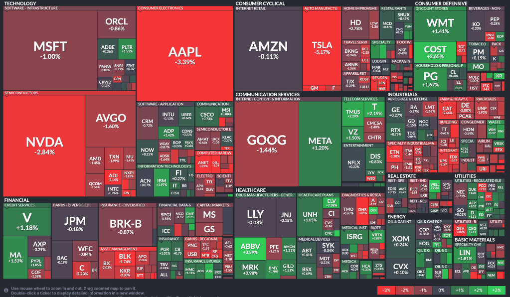 - Tech earnings once again came in in line with or better than expectations, but the overall pressure from tariffs and inflation weighed on equities. However, the tariff delay announcement after market close, combined with tomorrow’s earnings releases, could help fuel a rebound-unless new tariff imposition news emerges to dampen sentiment