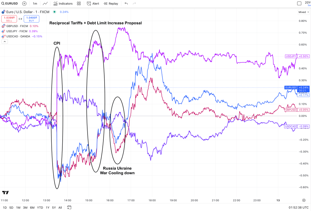 - From the close, it’s clear that USD/JPY took the biggest hit today. JPY lost 100 pips on the CPI print and never recovered, even as tensions around the Russia-Ukraine war eased. This was largely because JPY had served as Asia’s reserve currency during the conflict. The US session moves followed a 100-pip drop overnight after BOJ Governor Ueda reaffirmed that rates would stay flat with no further hikes. USD/JPY has been the most volatile pair since the US elections, driven by tariff uncertainty and geopolitical risks, but the broader weakness still stems from the interest rate differential and Japan’s weaker growth outlook.